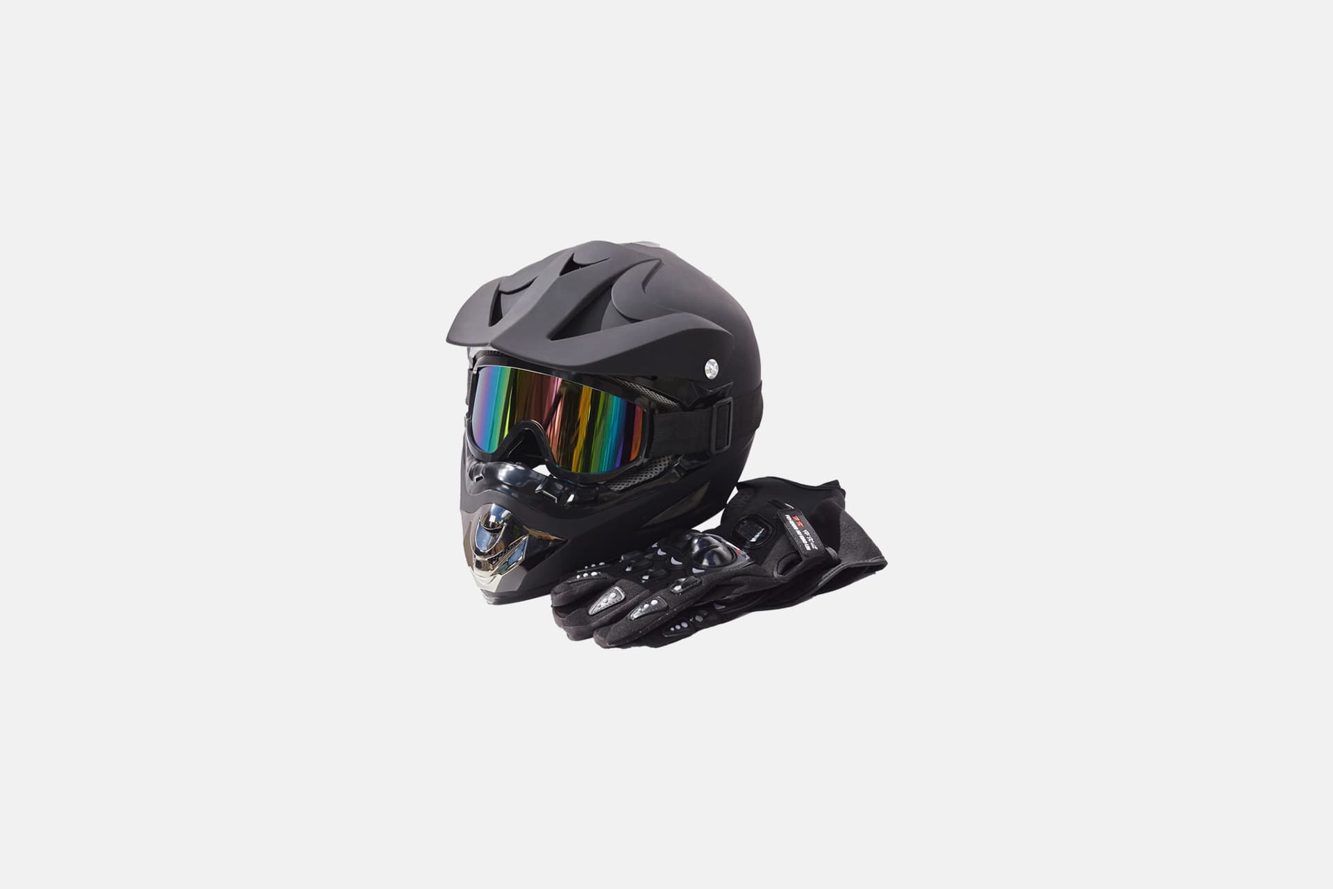 Шлем защитный + перчатки (набор) черный S